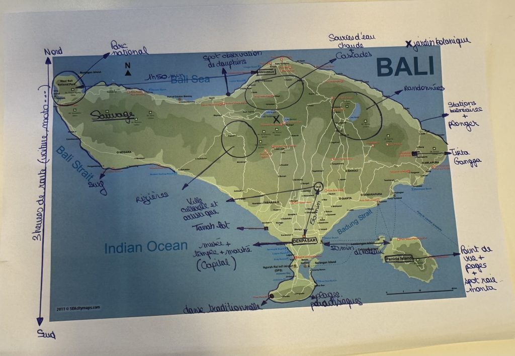 Exemple d’une mission confiée, ici il s’agissait de cartographier les lieux principaux à voir lors d’un voyage à Bali.